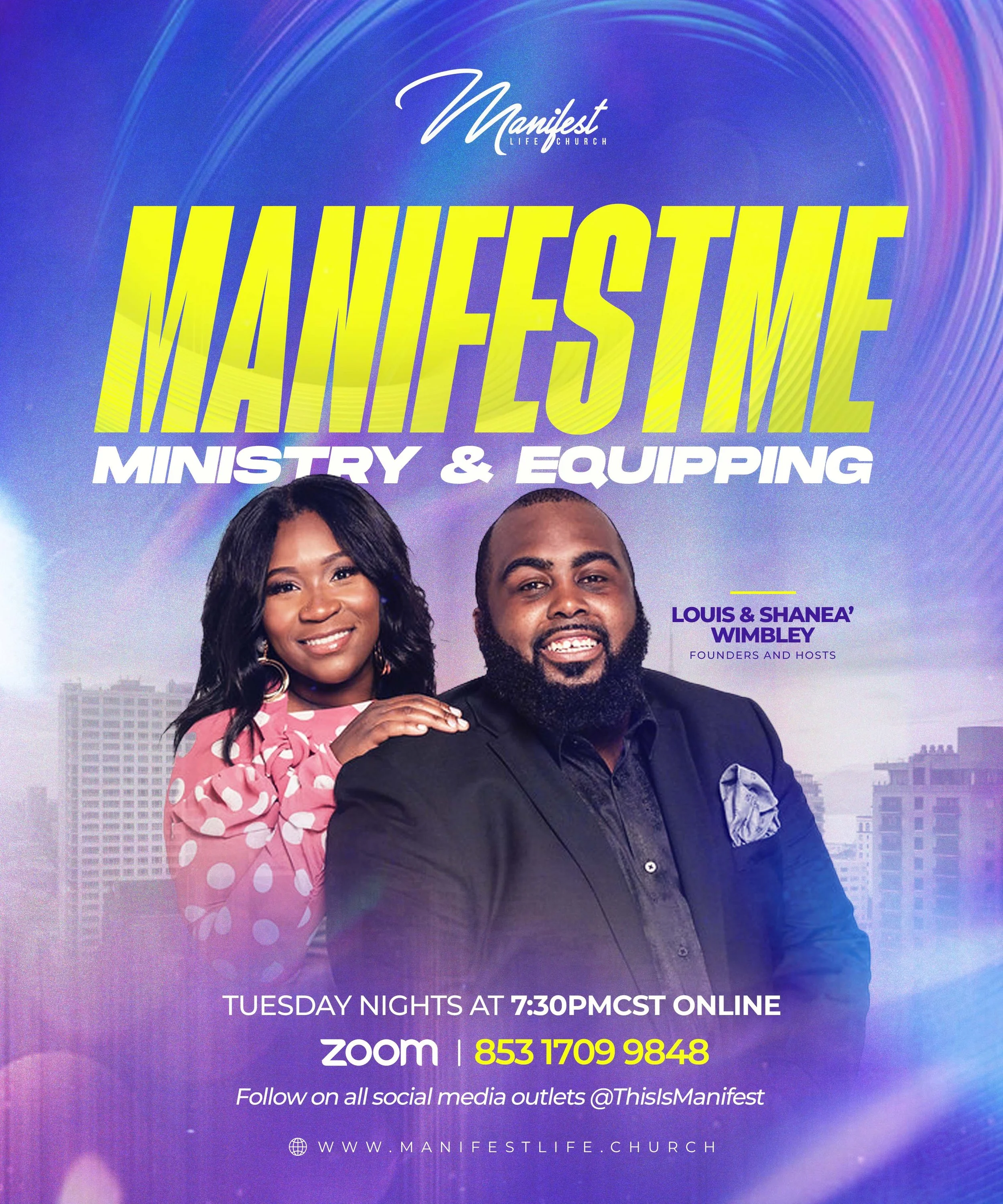 Louis and Shanea Wimbley are proud to be natives of Chicago, Illinois. They have been married for 11 years and are the parents of two boys, Nathan and Zach. Louis and Shanea are the humble leaders of Manifest Life Church. Lous and Shanea’ are two examples of love, dedication, transparency, and authenticity. They are burdened by the Holy Spirit to preach truth, establish justice, and do good works among our communities.